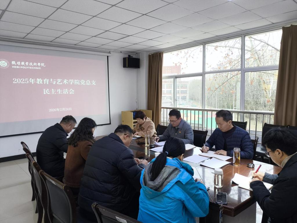 2026年2月24日下午,教育与艺术学院党总支召开2025年度民主生活会,会议由教育与艺术学院党总支书记裴小鹏主持,全体党总支委员参会,学校督导组苑瑞林同志到会指导。