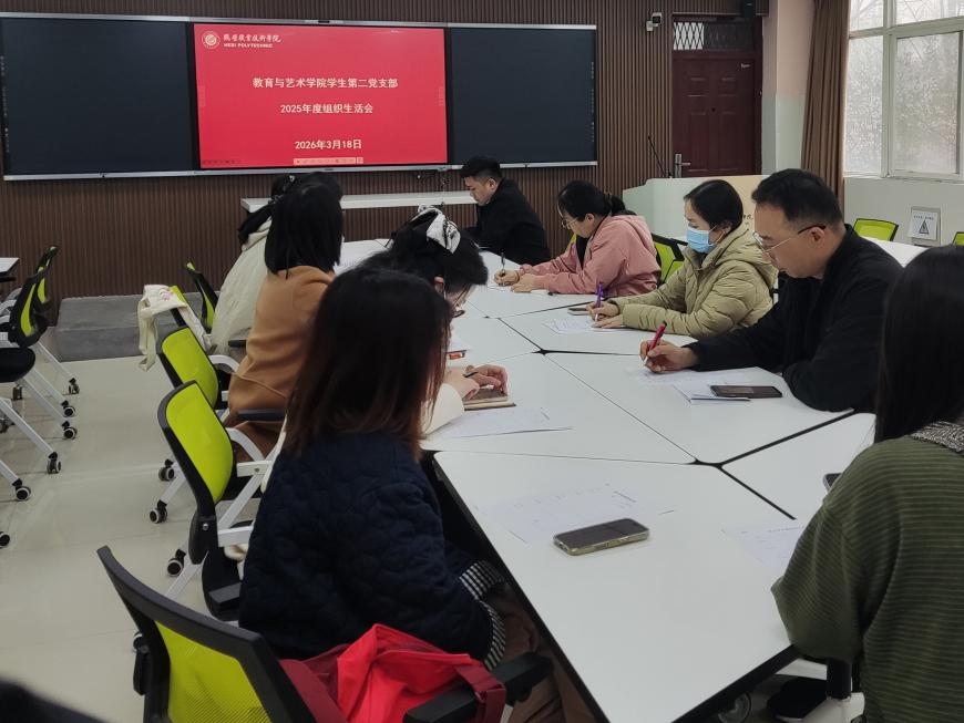 3月18日,教育与艺术学院学生第二党支部于拓新二号楼1235实训室召开2025年度组织生活会。此次会议按照相关要求,聚焦深入贯彻中央八项规定精神,对照党的六项纪律全面、深入查摆问题,党支部全体党员教师参加。会议由学生第二党支部书记胡泽兵同志主持。